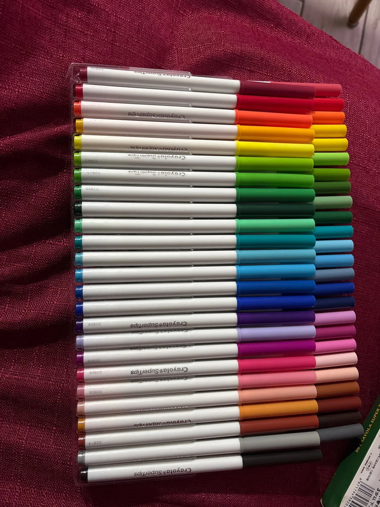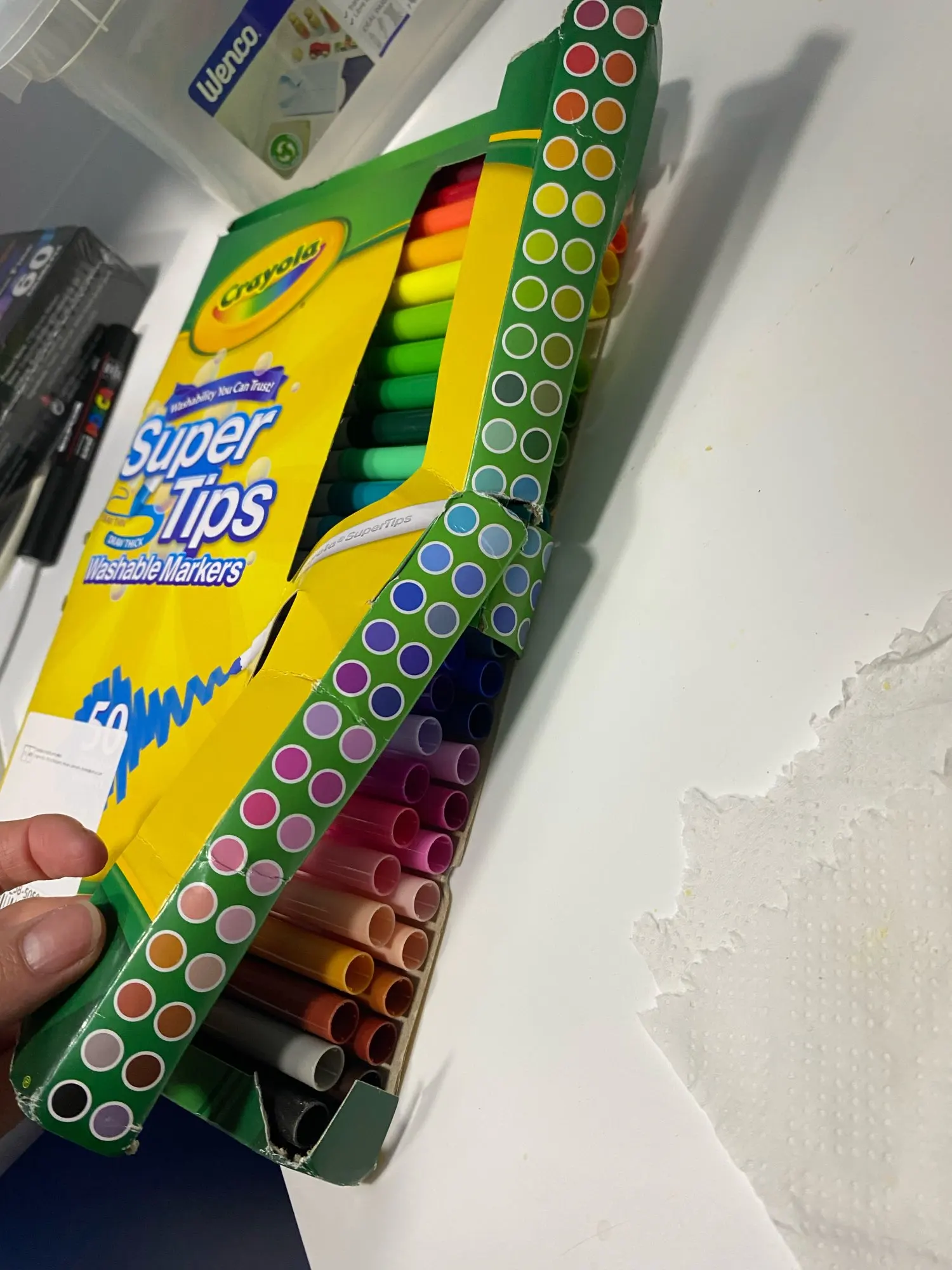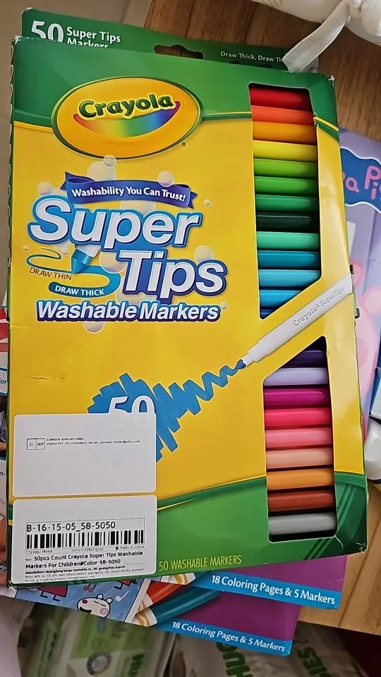 Exprimez votre créativité en grand avec ce lot de 50 feutres lavables Crayola Super Tips, conçus pour dessiner, colorier et écrire avec fluidité.